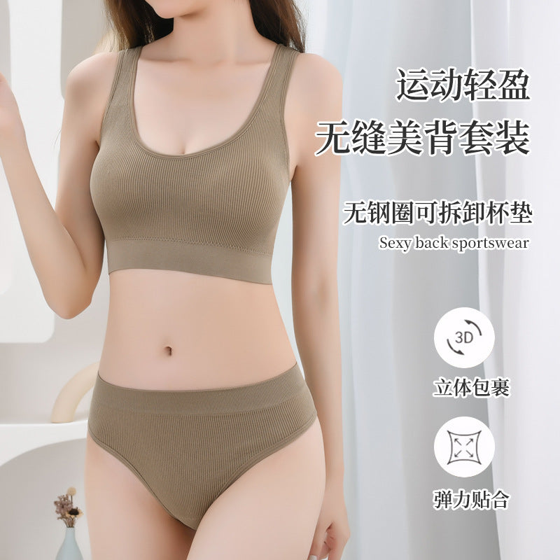 Cross-border Threaded U-shaped Beautiful Back Female No Steel Ring Sexy Bra Vest Style Underwear T Underwear Triangle Cup Thin Bra