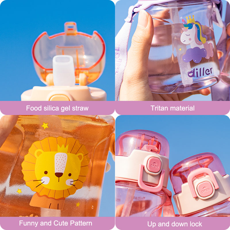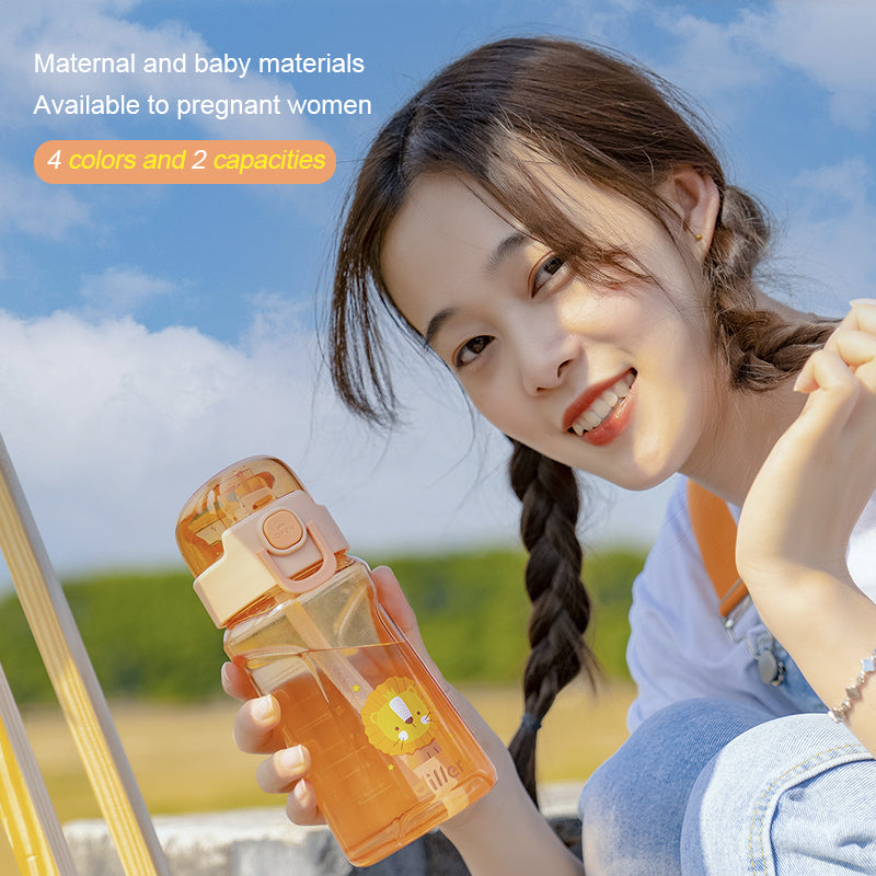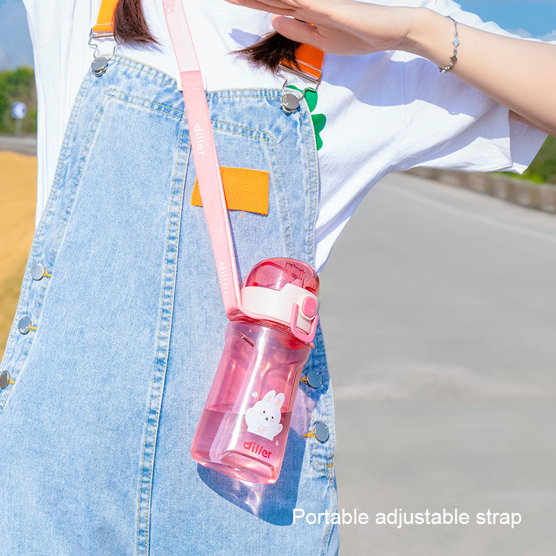 Wholesale Cute Student bpa Free Tritan Drink Bottle Leak-proof Straw Water Bottle With Push-button Lid And Strap