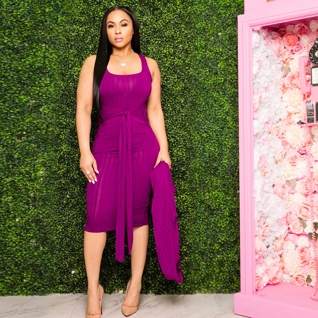 Women Clothes Fall New arrival 2022 solid long sleeves dress boutique clothing two piece sets knit rib dress
