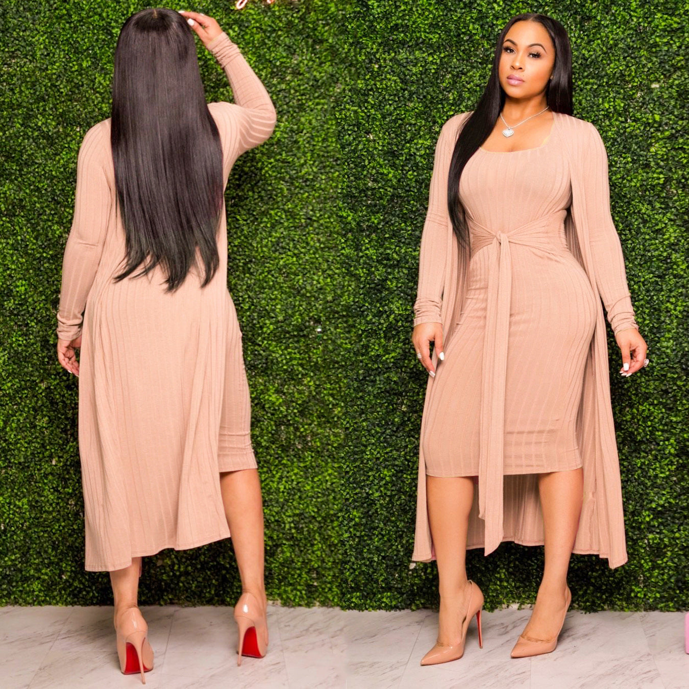 Women Clothes Fall New arrival 2023 solid long sleeves dress boutique clothing two piece sets knit rib dress