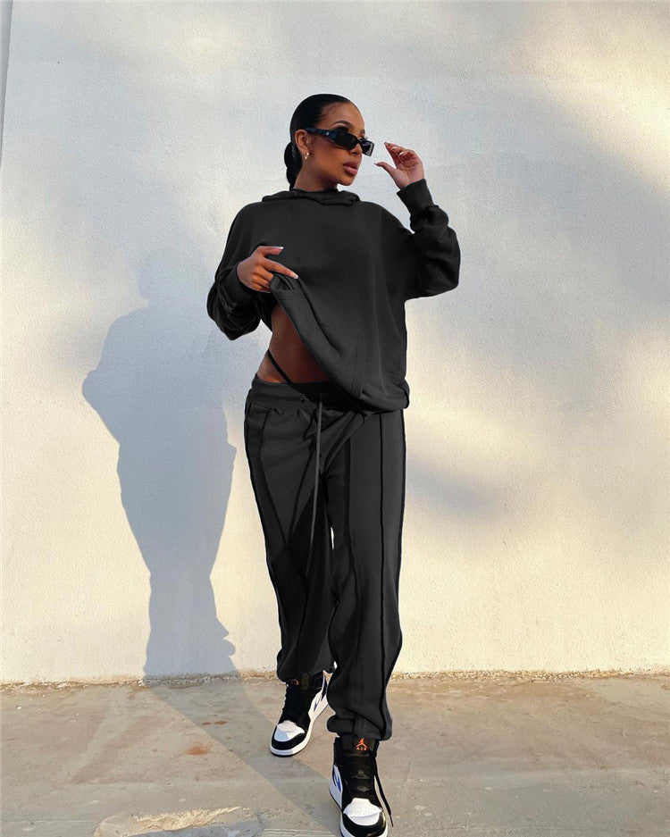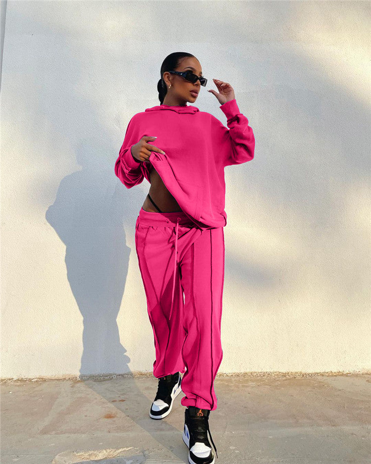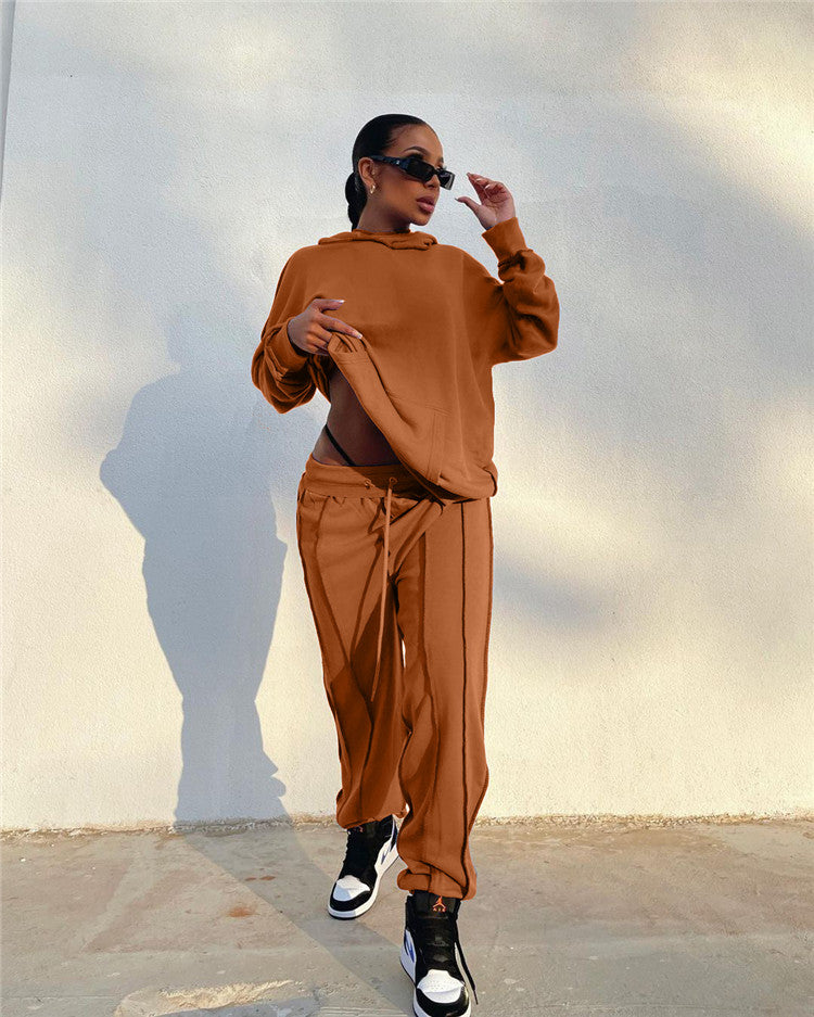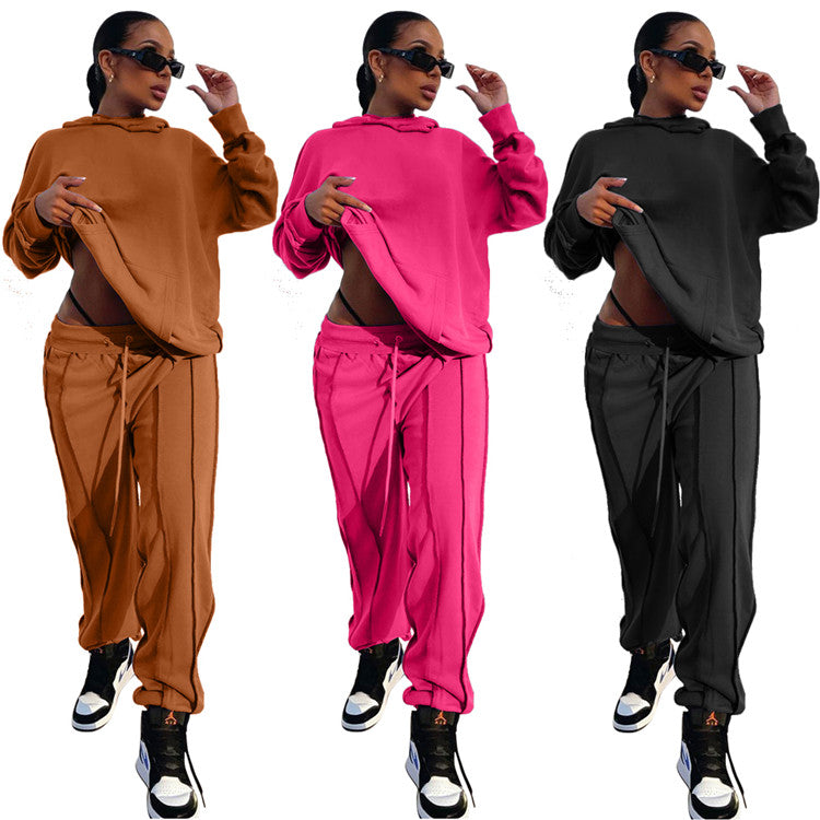 EB-2023 new100510 High Quality Ladies Outfits Long Sleeve Hoodies Loose Cozy Autumn Clothes 2 Piece Set For Women