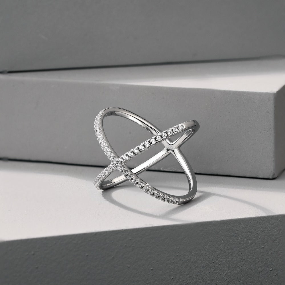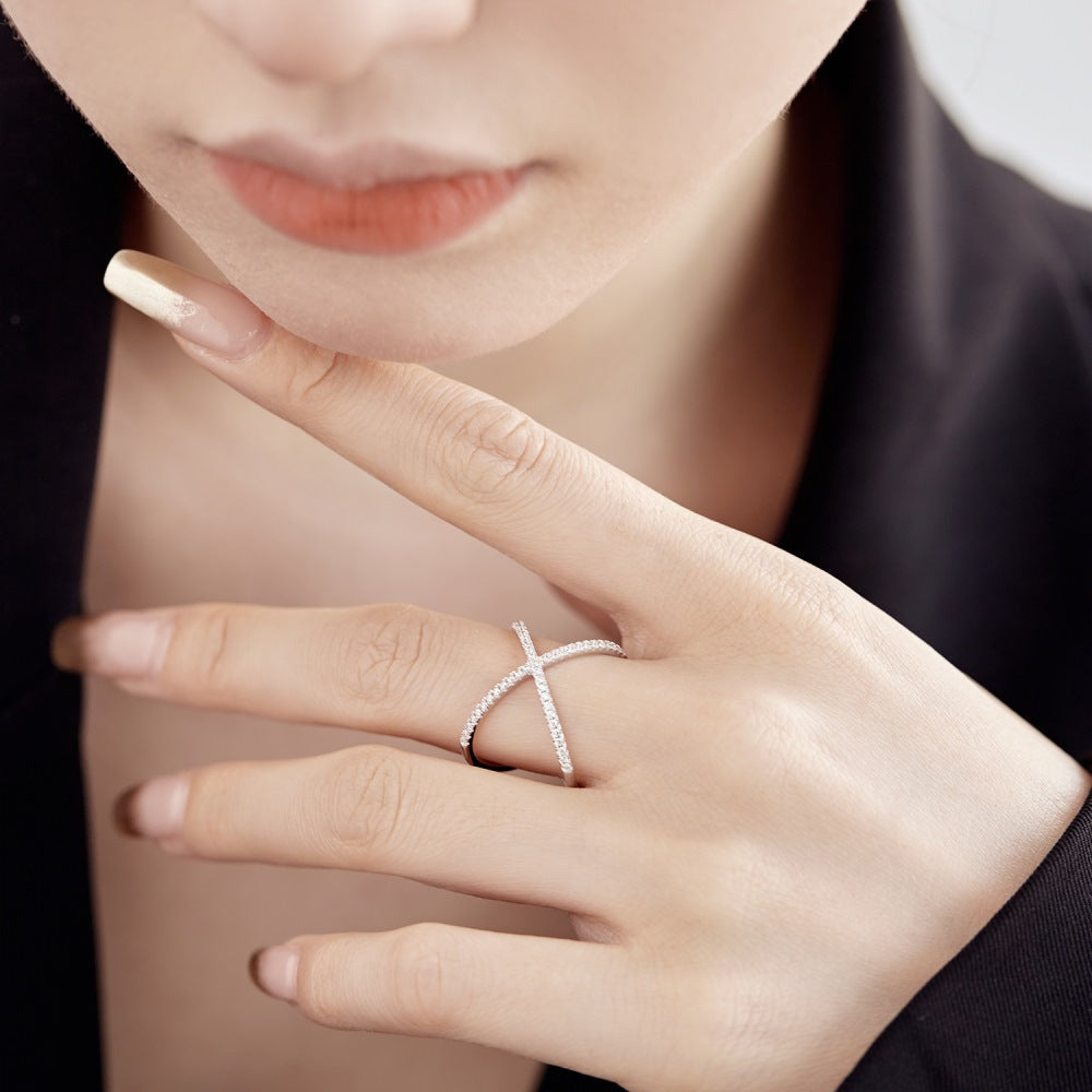 S925 Sterling Silver Ring Light Luxury Zircon Inlaid Cross Ring Stacked Ring Geometric Personality Jewelry Female Ring